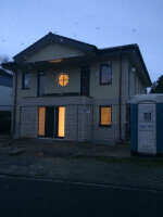Hallo zusammen, nochmals danke für die Antworten, aber ich muss das Thema noch mal aufgreifen. Heute Morgen, als ich zur Arbeit fuhr habe ich folgendes gesehen. Dort geht es ja auch irgendwie. Die haben halt das Dach oben erweitert. Ist für mich jetztdie Frage was günstiger ist, das Dach oben oder die Entwässerung über dem Erker? Was meint ihr?