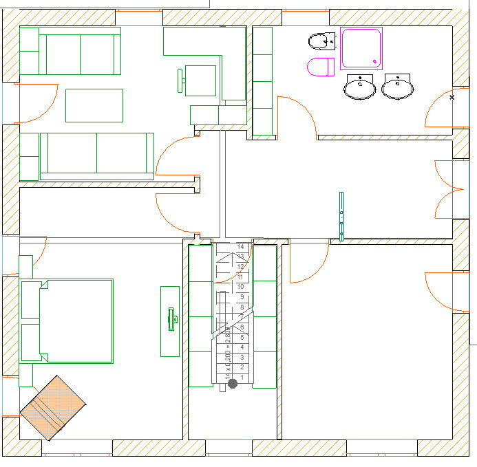 Obergeschoss (leider hat sich das Untergeschoss in der Draufsicht durchgezeichnet, deren Wände):