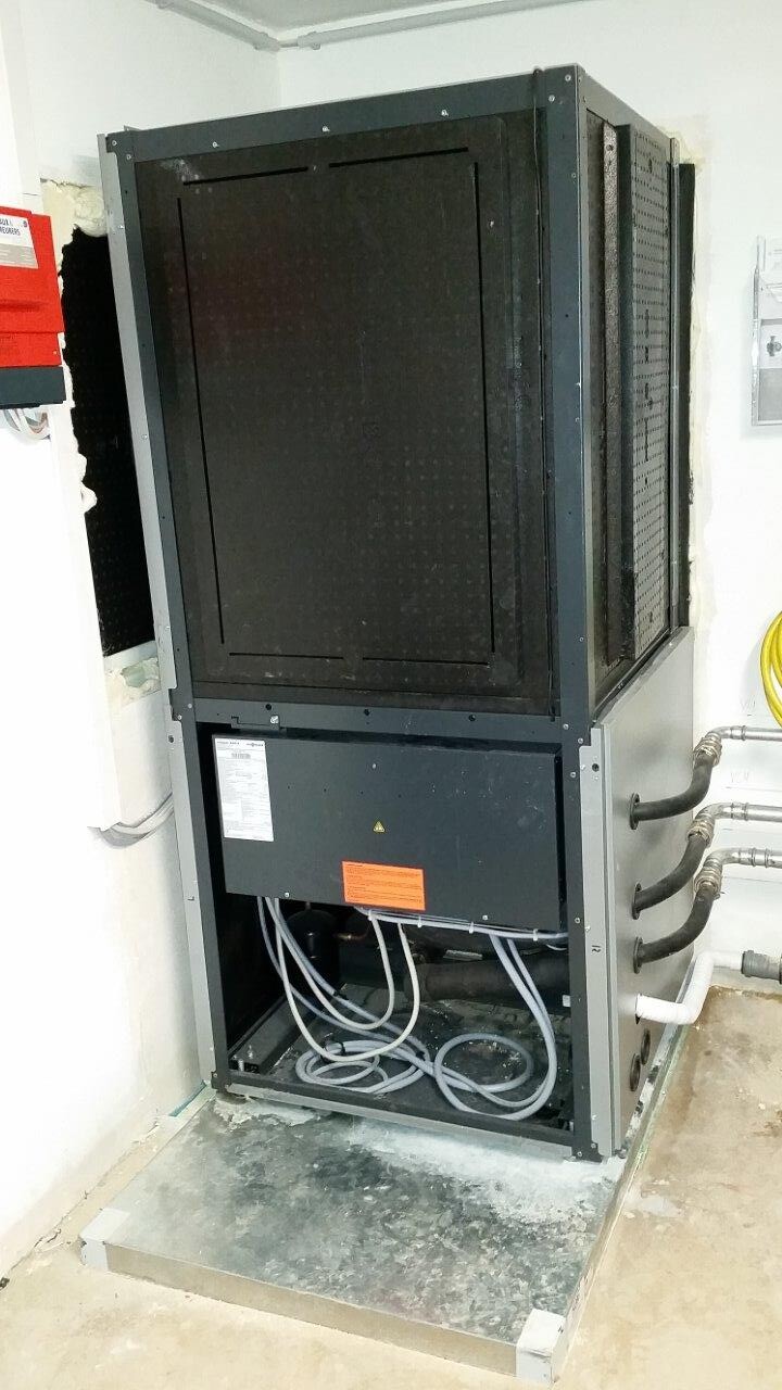 wir haben eine Vitocal 300-A von Viessmann eingebaut bekommen, die an zwei Kellerlichtschächte angebracht worden sind.