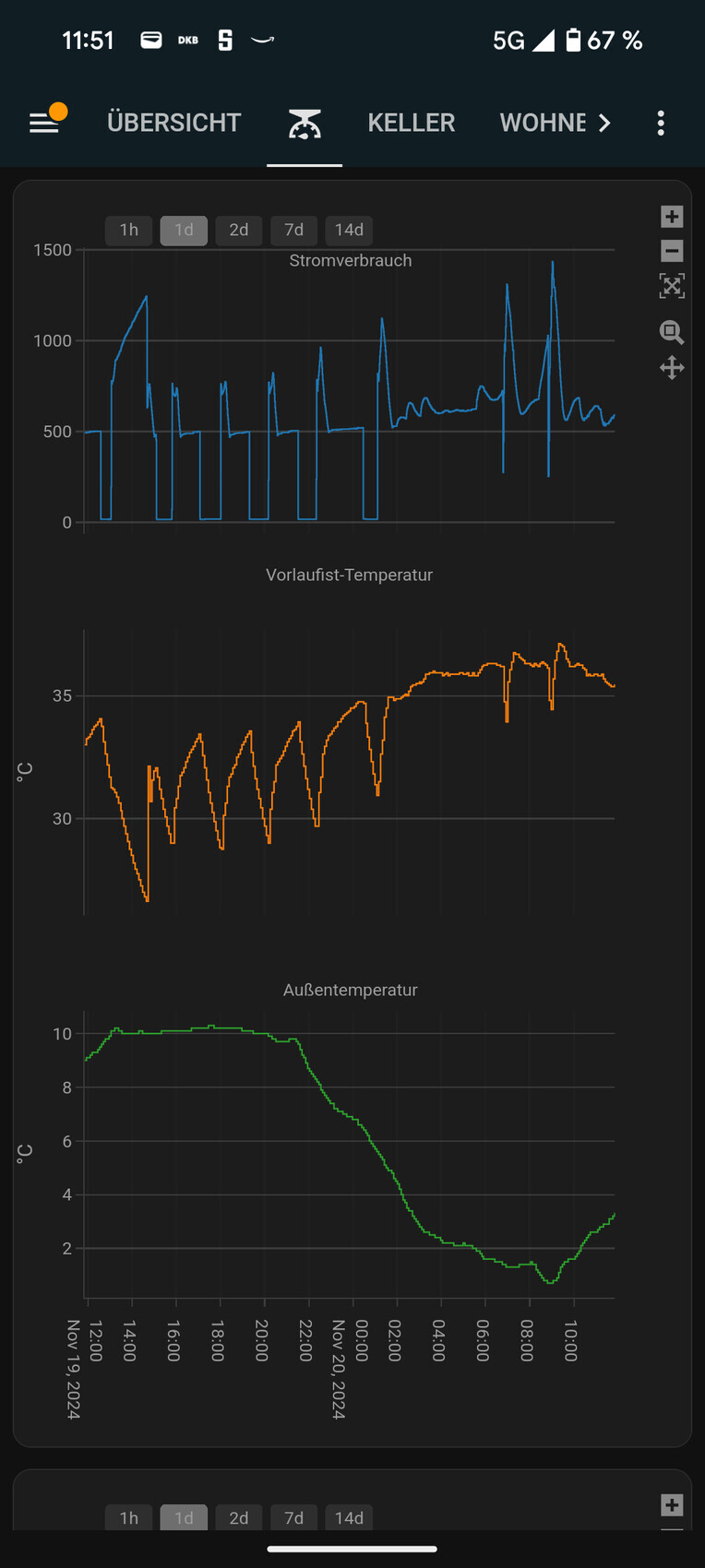 markschmulenso20.11.24 12:06Meinst du die Vorlauf-Ist Temperatur für den Heizkreislauf? Zur Zeit liegt diese bei ca. 35 Grad bei einer Außentemperatur von 3,5 Grad.