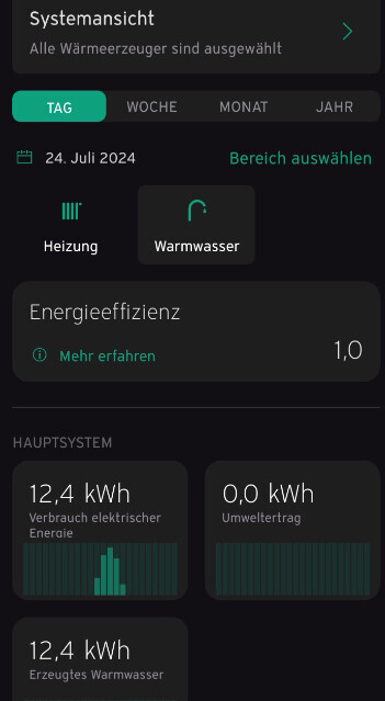 Tage nach dem 24.07.2024 habe ich auch erkannt das dort was nicht stimmen konnte und festgestellt das nur über den Heizstab der MEH97/6 warmes Wasser gemacht wurde, warum auch immer.