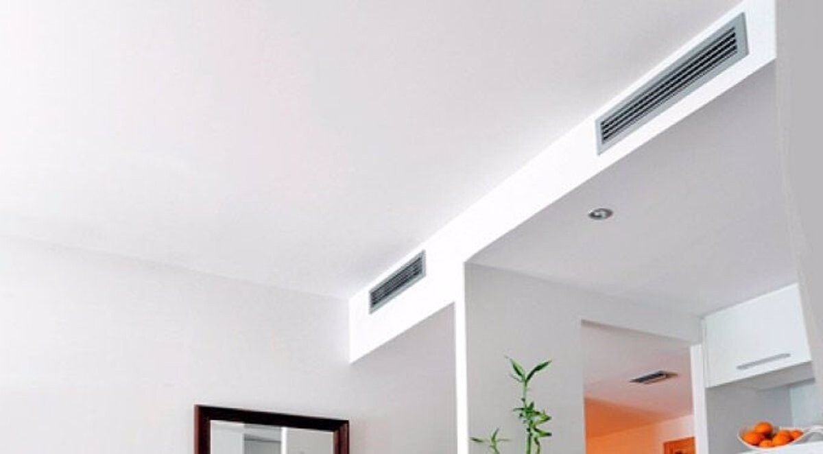 Ein Zentrales Klimagerät stellt Wärme und Kälte zur Verfügung die man dann in jeder Wohnung über ein Kanalgerät verteilt. Das Kanalgerät funktioniert als Luftheizung und -Kühlung.