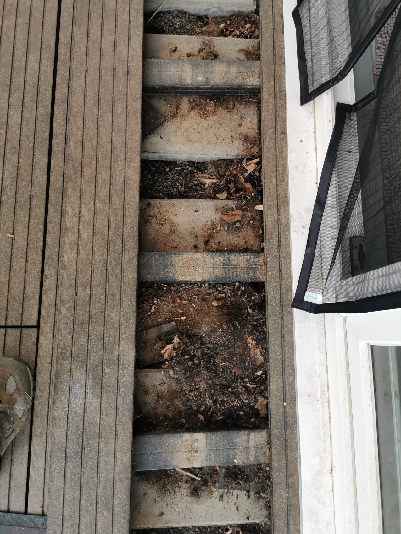 Direkt vor dem Fenster ist (außen) unsere Terrasse. Da haben wir allerdings auch immer wieder mal kleine schwarze Kotkrümel liegen, könnte von Mäusen sein. Von daher bin ich mir nicht sicher, ob der Geruch durch Feuchtigkeit kommt, die durch undichte Stellen unter den Estrich oder unter den Holzboden zieht, oder ob es von Mäusen kommt, die unter dem Fußboden wohnen.