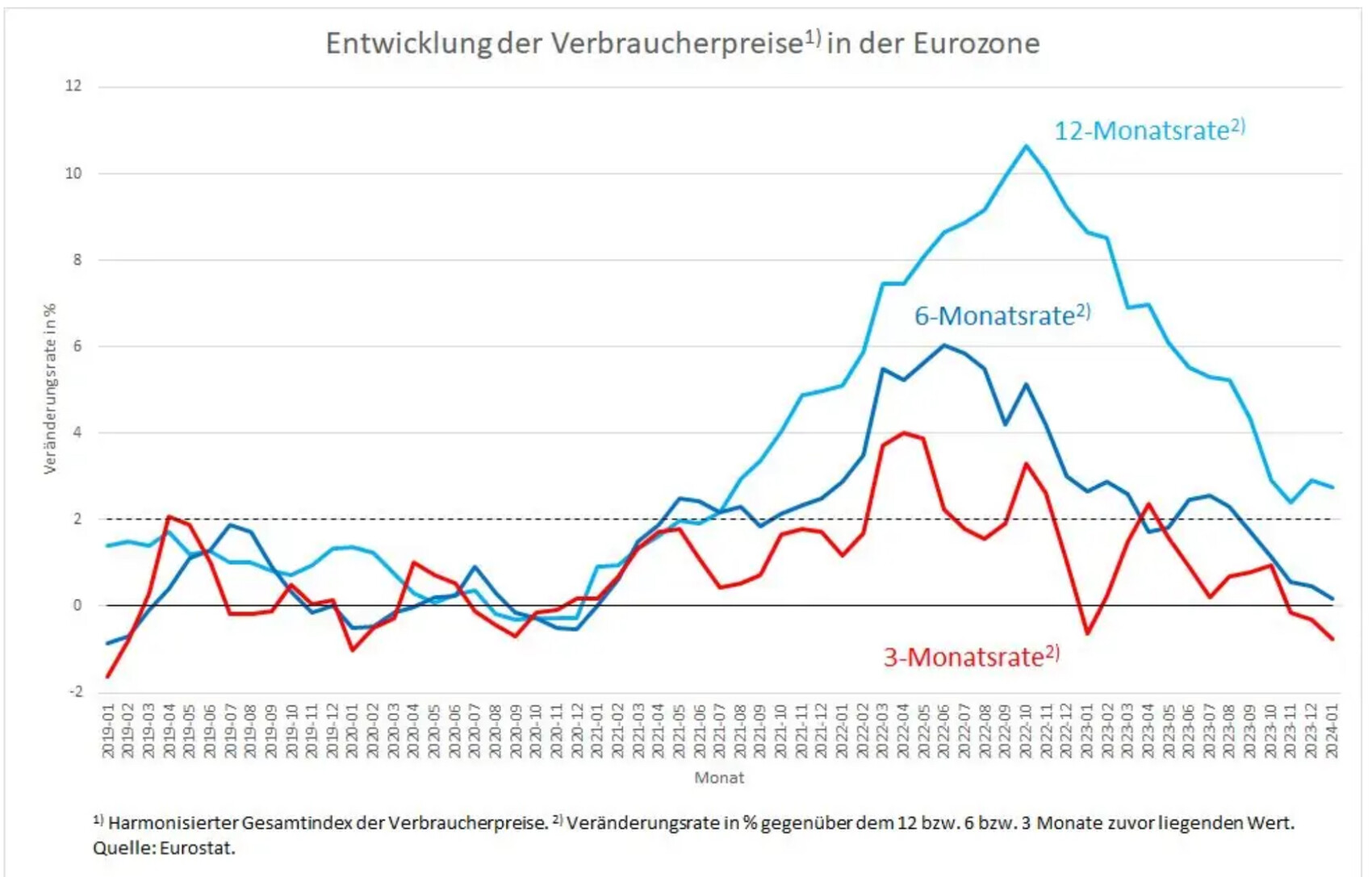 Das mit der Inflationsrate ist ja nicht so, dass wenn diese von 9 % im letzten Jahr nun auf 5-6% in diesem Jahr oder gar auf 4 % im Januar 2024 runter geht, dass dann die Preise runter gehen: NEIN, dann steigen sie nur nicht mehr so schnell wie davor, aber sie steigen weiter. Das lernt man eigentlich auch in der Schule.