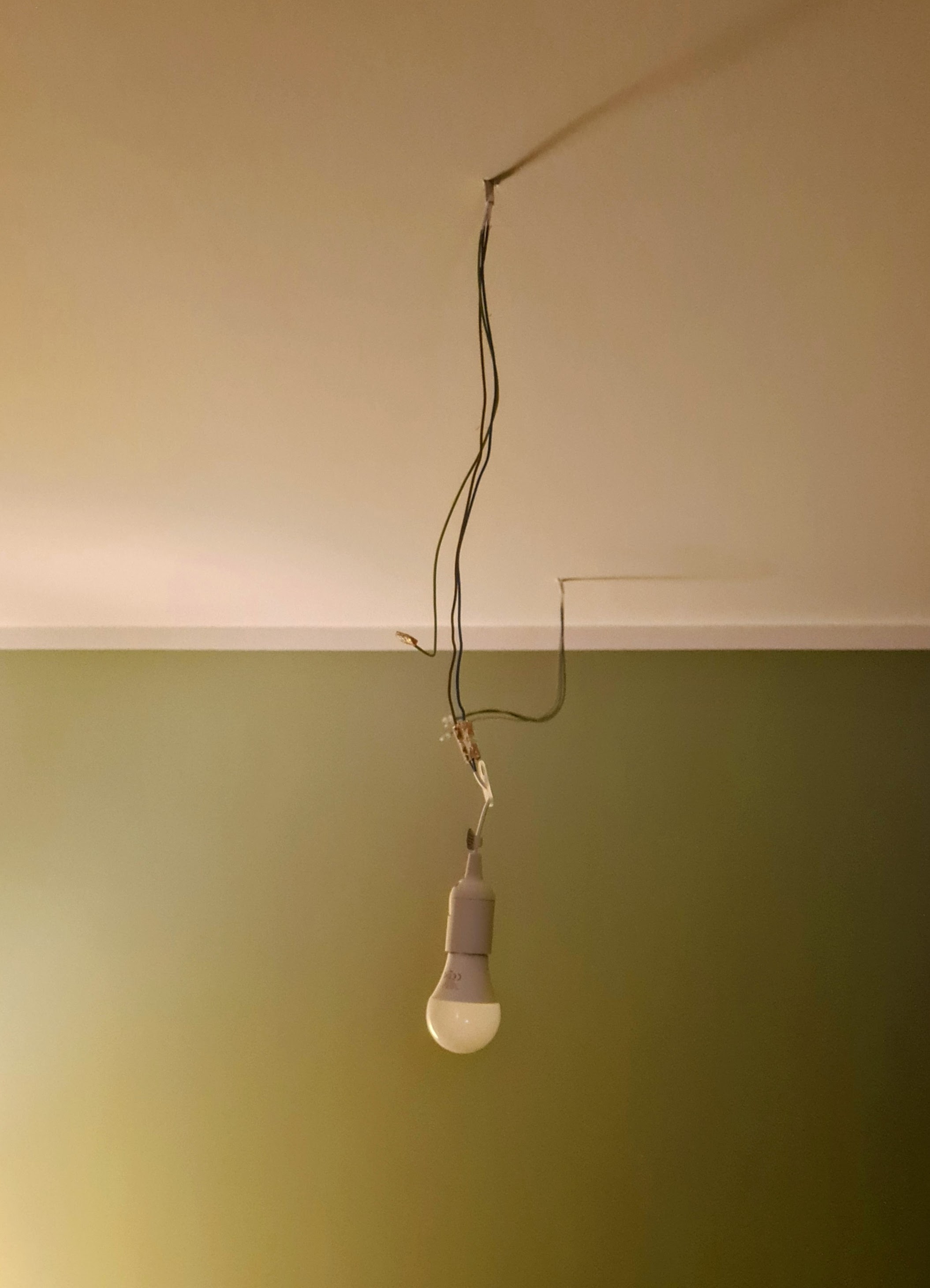 Und bis uns eine schicke und günstige Lampe über den Weg läuft bleibt das eben im Wohnzimmer so