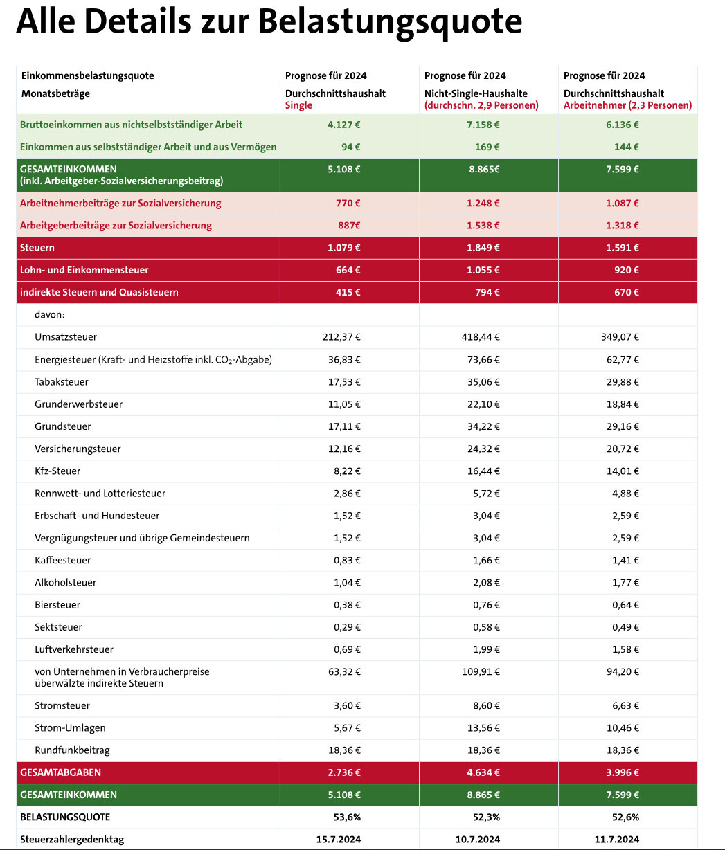 Das passt schon mit den 70 Prozent Steuer und Abgabenquote. Tendenz weiter steigend.Recherchier bitte korrekt und rate nicht (nachfolgend zwei Tabellen/Artikel: Bund der Steuerzahler und Focus)Diese über 50% Steuern und Abgaben umfassen alle direkten und indirekten Steuern und Abgaben. Andere Quelle wie das statistische Bundesamt veröffentlicht vergleichbare Zahlen.