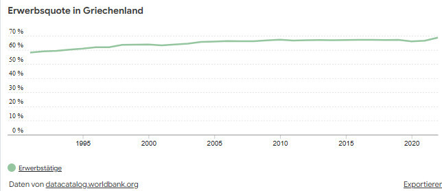 "Griechenland bleibt auf stetigem Wachstumskurs. Während in manchen EU-Staaten die Wirtschaft bereits im zweiten Jahr stagniert oder sogar schrumpft, legte das griechische Bruttoinlandsprodukt (BIP) im zweiten Quartal 2,3 Prozent zu. Es wuchs damit fast viermal so schnell wie die Wirtschaftsleistung der EU-Länder im Durchschnitt. Sie stieg um 0,6 Prozent. Für das Gesamtjahr 2024 erwartet die griechische Regierung ein Wachstum von 2,2 Prozent. Die EU-Kommission setzt dagegen im Mittel der 27 Mitgliedsstaaten für dieses Jahr nur 0,8 Prozent an.Oh bitte, sonst bist du doch immer der mit den Diagrammen ( ernstgemeint positiv ). Hättest du den von dir zitierten Ausschnitt aus einem Artikel mal derselben Prüfung unterworfen… also sorry, hier sehe ich den Bestätigungsfehler am Werk, meine persönliche Meinung.Einfacher Blick auf Statista: