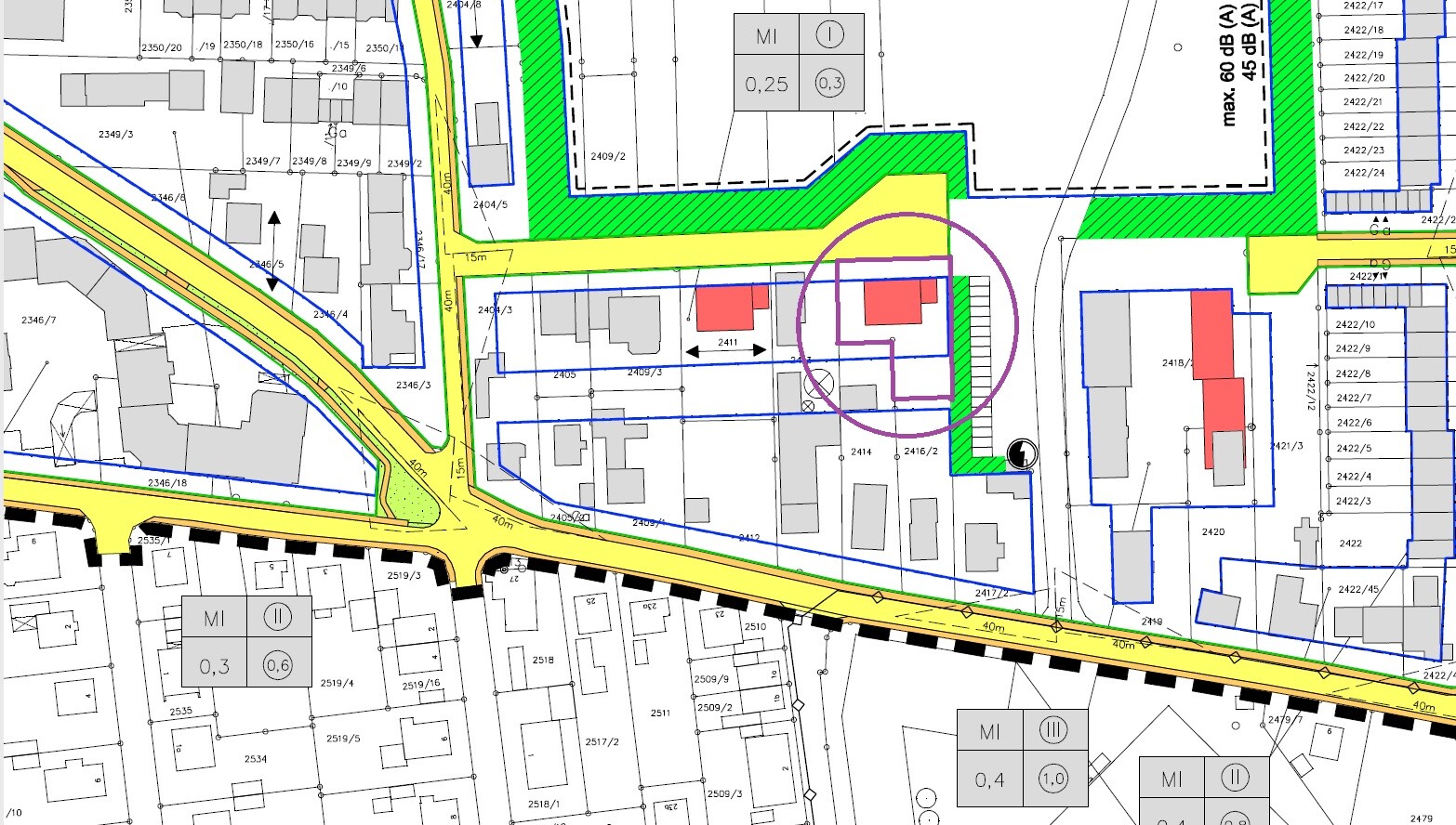 Es geht um das Lila eingekreiste und markierte Grundstück.