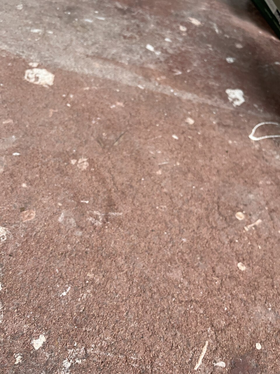Die Wohnung wurde allerdings ohne "Boden" übergeben. Drinnen in nur dieser rote Steinboden. Er ist recht staubig. Wenn er nass wird, dann färbt er stark ab und braucht länger zum trockenen. Was ist das für ein Boden? Ist das Estrich? Der Boden ist nicht gefährlich, oder?
