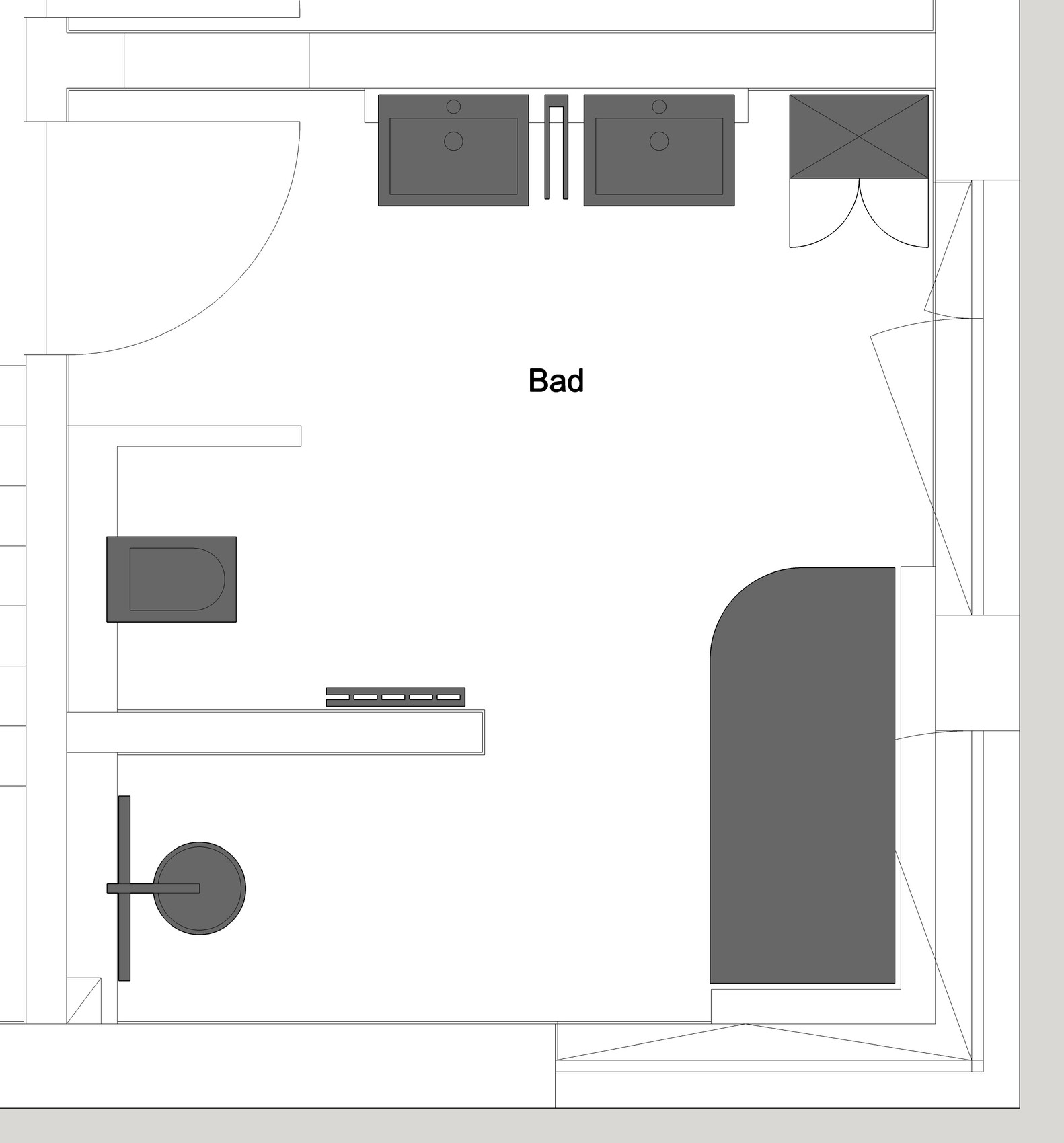 Vom Platz ginge das. ich finde nur das Layout nicht so schön. Wenn man in der Wanne liegt, hat man den Kopf auf Höhe der Toilette und wenn man auf der Toilette sitzt sieht man sich im Waschbeckenspiegel.Ist es echt so schlimm? Wie gross muss das Bad sein um die Toilette von der Badewanne aus nicht zu sehen? T-Wand finden wir aufgrund des Fensters leider schwer umzusetzen.