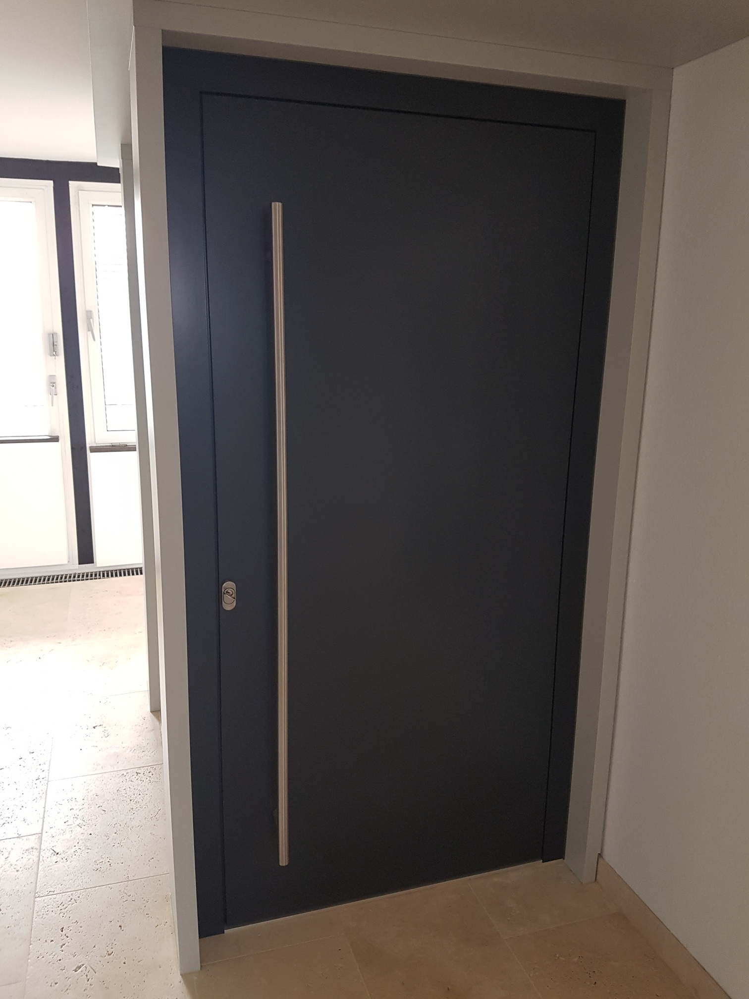 Für unser Haus ist eine Aluminium-Haustür von TMP vorgesehen. Mit 7 fach Verriegelung und 5 Sterne Sicherheitspaket.