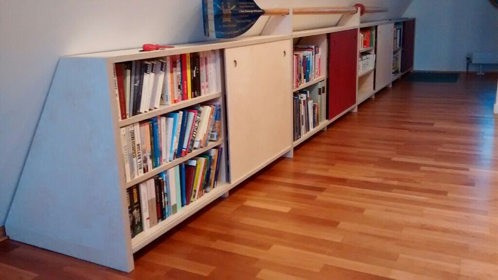 Ich habe in letzter Zeit viele Einbaumöbel für die Dachschrägen im ausgebauten Dachboden gebaut. Da kam Birke Multiplex zum Einsatz. Schwer, stabil, nicht billig, aber wunderbar zu verarbeiten und verzieht sich auch unter Last nicht. Die Verbindungen sind da mit Lamello und Taschenlochschrauben gemacht. Nicht die hohe Kunst aber für die Anwendung und Menge da sinnvoll. Schiebetüren habe ich nur eingenutet. Die laufen ohne Mechanik prima. Da habe ich dann bisschen gespart. Im Anhang gibt es ein Foto als Überblick.