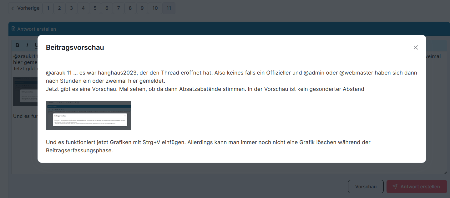 Und es funktioniert jetzt Grafiken mit Strg+V einfügen. Allerdings kann man immer noch nicht eine Grafik löschen während der Beitragserfassungsphase.
