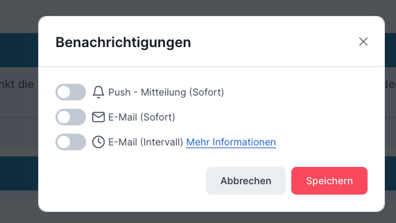 Benachrichtigungssystem (Glocke) ist Online.