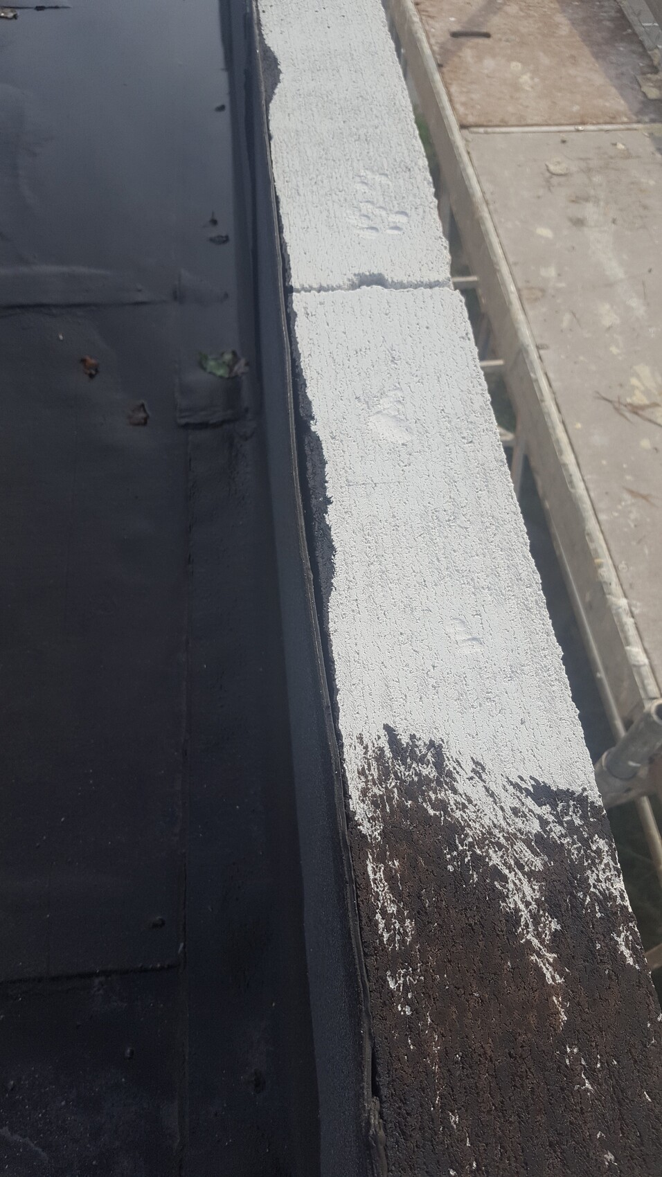 Wir hatten hier 2 Tage starken Regen und anscheinend ist das Wasser vom Dach durch die Spalte auf der Attika ins Mauerwerk gesickert und von da aus ins Fenster.
