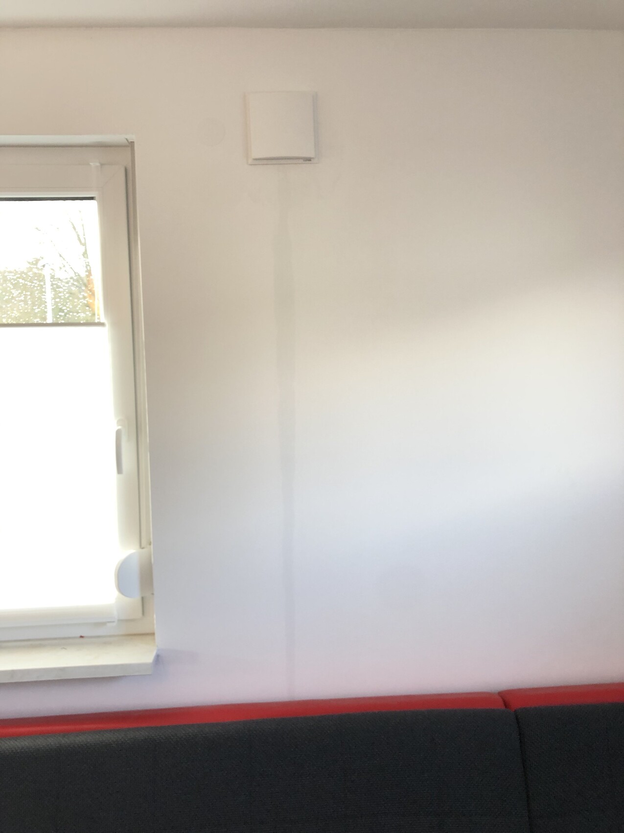 Während der aktuellen Unwetter haben wir immer wieder Wassereintritt durch die dezentrale Lüftungsanlage an der Wetterseite.