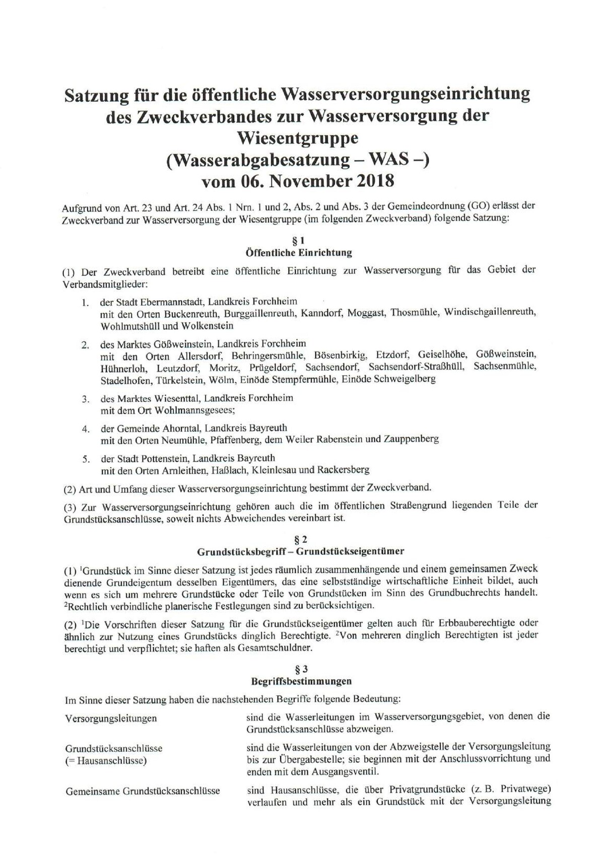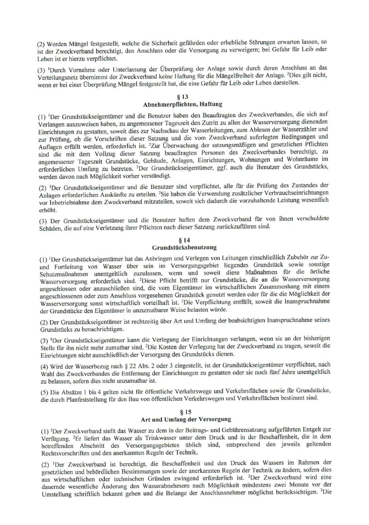Aber eine Versorgungsleitung im Ort existiert ja. Wir benötigen nur einen überdurchschnittlich langen Hausanschluss. Außerdem sind wir selbstverständlich bereit, die Mehrkosten dafür zu tragen. Warum müssen wir aber auch die Kosten tragen, die sonst bei jedem anderen Anschluss vom Versorger übernommen werden? Ich hänge mal die Satzung an!