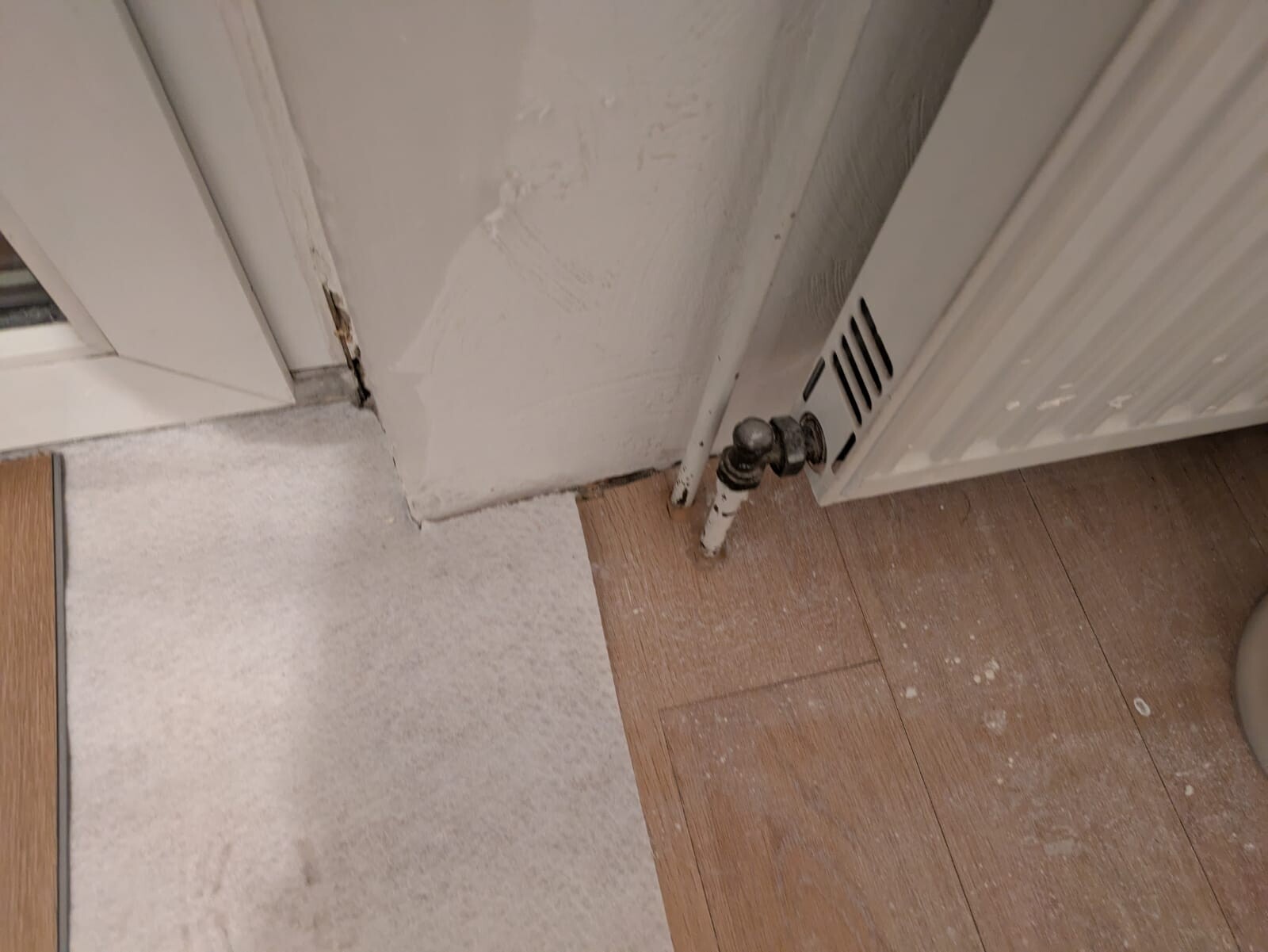 Links auf dem Bild vom Heizkörper, sieht man die Tür, die zur Loggia führt.