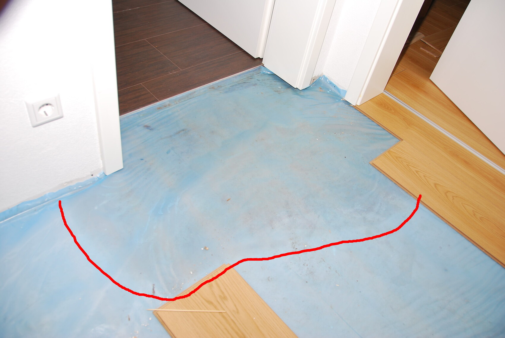 Hallo! Die Folie wird als Dampfsperre unterhalb des Laminats verlegt.