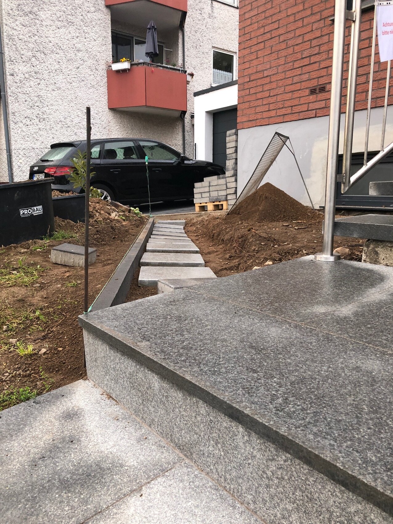 wir möchten einen kleinen Weg (ca. 5m Länge und 72cm Breite - Randsteine jeweils 6cm pls 1 Stein mit 40cm und einer mit 20cm Breite) von der Einfahrt bis zum Podest, wo die Treppe zum Haus führt, anlegen.