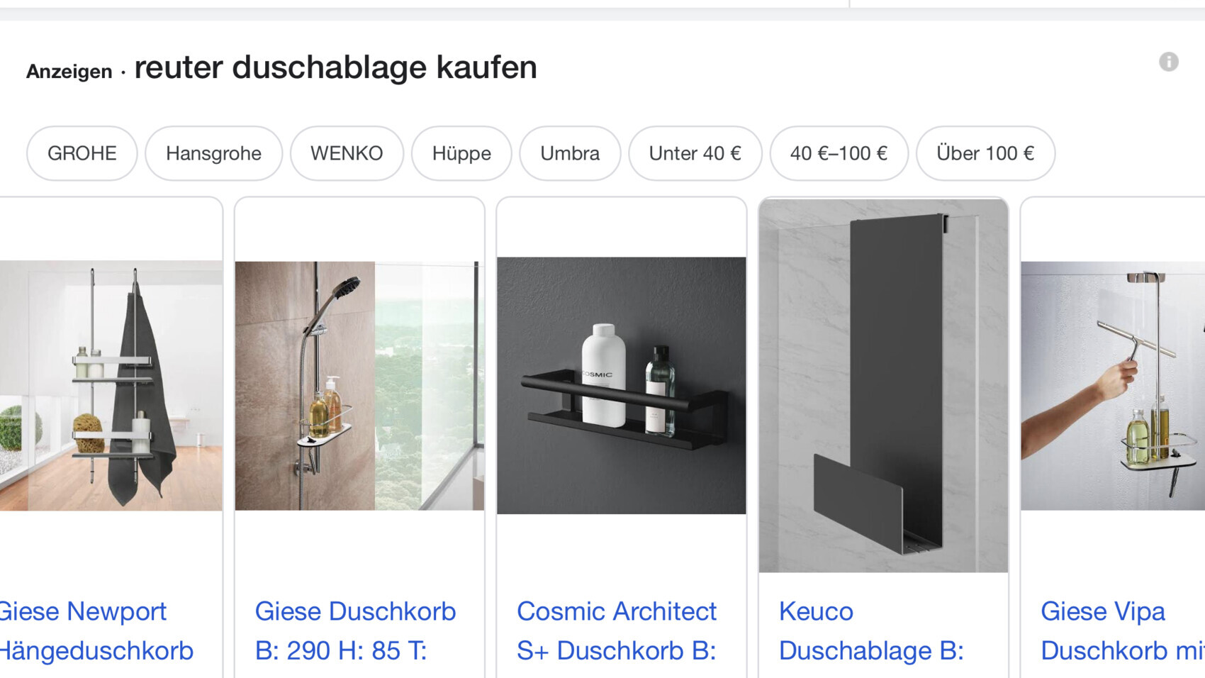 Googlen nach Ware musst Du schon selbst 😉Manchmal frage ich mich, wie Leute überhaupt dieses Forum finden 😀Wenn ich Reuter und Duschablage bei Google eingebe, kommt die ganze schöne Bandbreite des globalen Angebotes: