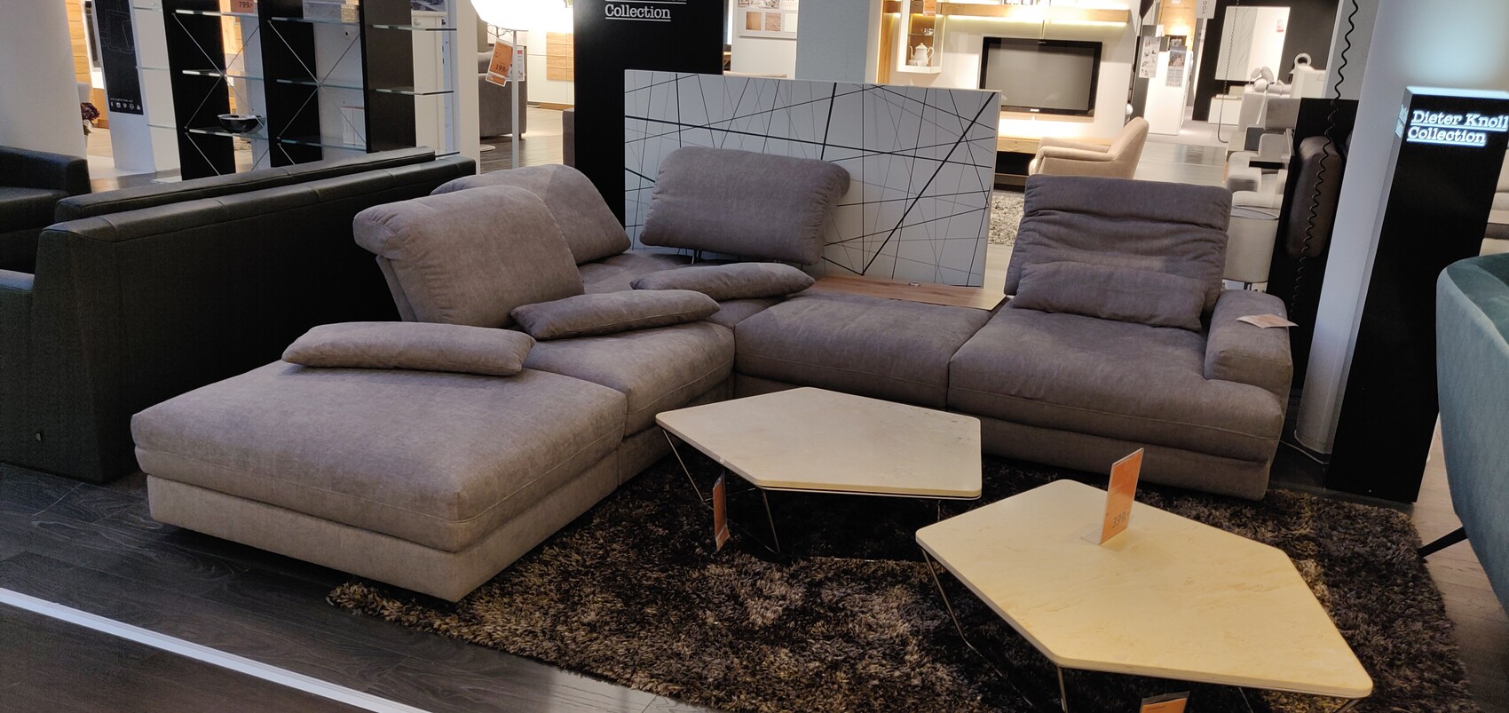 Dabei sind wir auf das Modell "Alessio" von Dieter Knoll Collection gestoßen. Leider war das gute Stück im XXL für unseren Bedarf spiegelverkehrt. Als wir uns die Couch vom Verkäufer konfigurieren lassen wollte, stellte er fest, dass das Modell nicht mehr bestellbar ist. Auch Online findet man dazu keine Informationen.