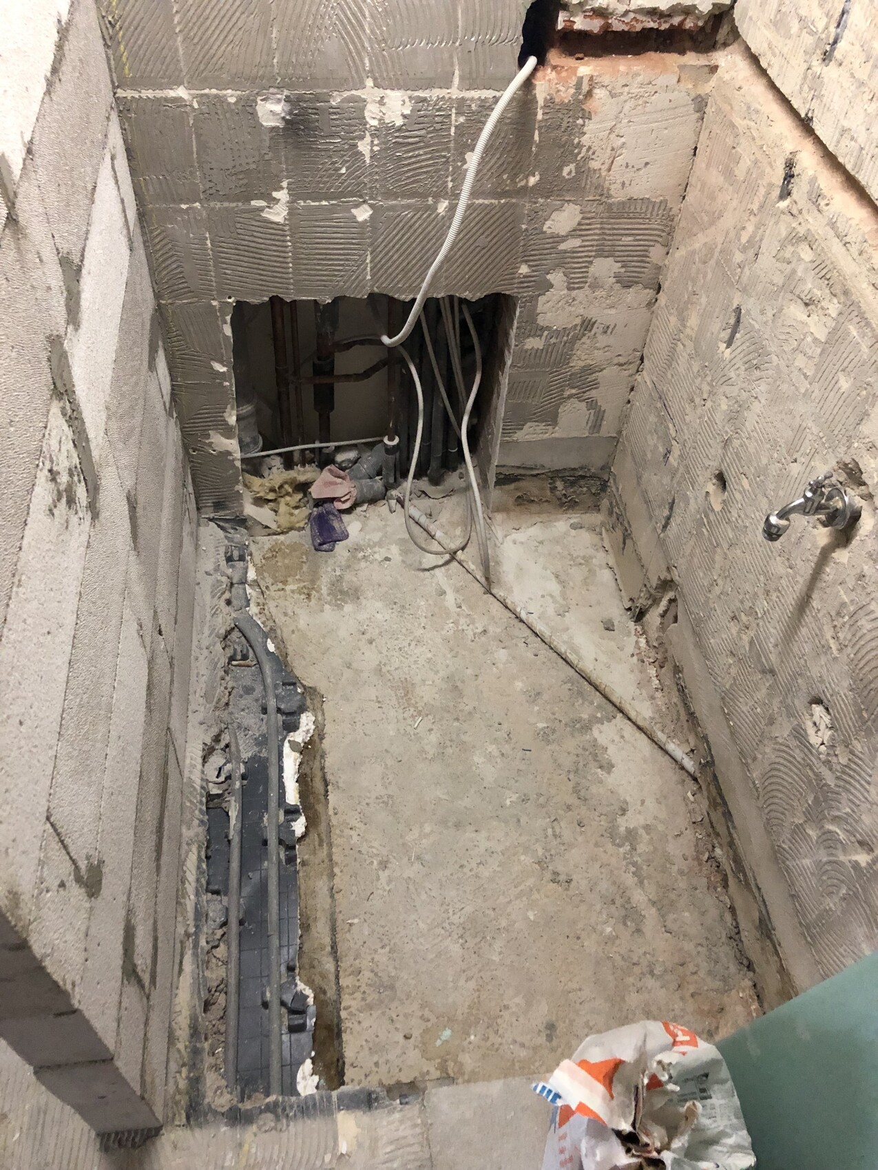 Die Dusche soll ebenerdig werden. An der Stelle hier war früher etwas anderes.