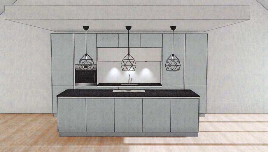 Anbei eine Skizze von der Küche. Allerdings machen wir wohl vorerst auch keine Hängeleuchten sondern auch dort Einbauspots, sind günstiger. Leider ist alles nochmal bisschen teurer als gedacht.