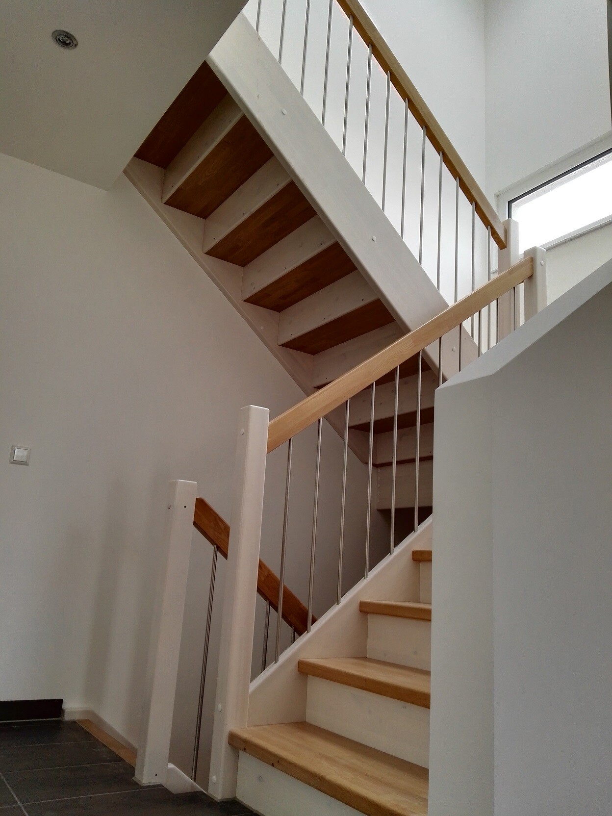 Es wäre auch eine niedrigere Steigung möglich gewesen, aber dann wäre der Auftritt bei nur noch 23,x cm gewesen. Und das war uns zu wenig. Da haben wir lieber eine Stufe rausgenommen.