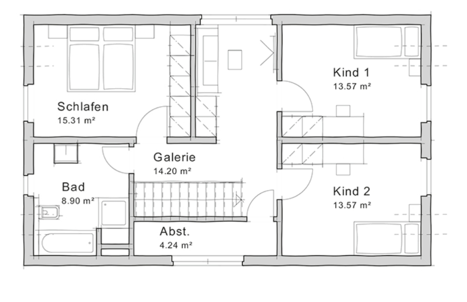 Der Grundriss in Beitrag #80 gefällt mir nicht, u.a. die Chillzone vor den Kinderzimmern paßt nicht zur Hausgröße. Bei nach dem Luftbild geschätzt sehr ebenem Grundstück und der Möglichkeit von zwei Geschossen plus Dach sehe ich genügend Abstellmöglichkeit (und ggf. auch solche für den Technikraum) oben und würde den Keller in die Rubrik kostenmäßig ineffizient stecken. Bei den Abstandsflächen scheinen mir die Nachbarn alle gut hingekommen zu sein, traufseitig zählt da m.W. die Traufhöhe, sofern keine wesentlichen Dachaufbauten hinzukommen, und giebelseitig dürfte der bayrische Höhenmalus durch das Sechzehnmeterprivileg kompensiert werden. Ein Staffelgeschoss sähe ich hier erstens nach §34 so ganz und gar nicht, und zweitens würde man sich dabei dann wohl auch bei den anzurechnenden Wandhöhen ins Knie schießen. Die von Dir und Anderen bisher genannten Hausbeispiele scheinen mir sämtlich geeignet zu sein, als konzeptionelle Basis zu dienen - also auch von daher sähe ich einen Kurswechsel zum Staffelgeschoss fern liegen. Auf Erkertricks würde ich hier nicht bauen, aber eine Garderobe sollte man schon nicht nur als Nice-to-have hinkriegen.