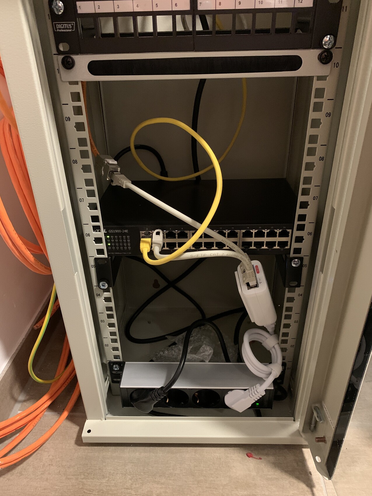 Hier mal ein Bild von einem 10 Zoll Schrank mit einem Zyxel GS190024E, also 24 Ports beim grossen A um die 100€.