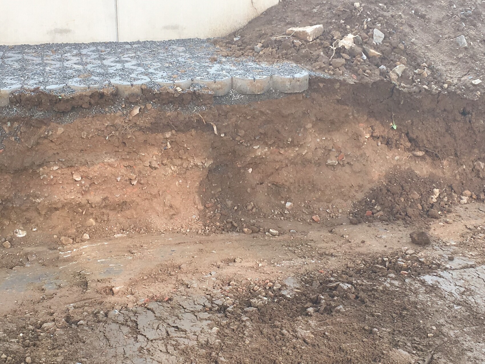 Bild Nachtrag zu dem Post von gestern. Thema Außenanlagen Wengerter, Unterbau Dungweg zwischen den Häusern. Der Fachbetrieb (Ironie aus) hat den Unterbau einfach mal weg gelassen, sowas wird ja gerne überschätzt und kost auch unnötig Geld. Reicht ja wenn man(n) 30 min mit der Rüttelplatte da rumballert, um danach die Verbundsteine einfach so auf den verdichteten Dreck zu legen und mit etwas Split abzudecken. Vielleicht merkts ja keiner, blöd nur das wir abgegraben haben um die Mauer zu setzen und der von uns beauftragte Fachbetrieb das sofort dokumentiert hat, damit klar ist das er für Folgeschäden an so einem Pfusch nicht belangt werden kann.
