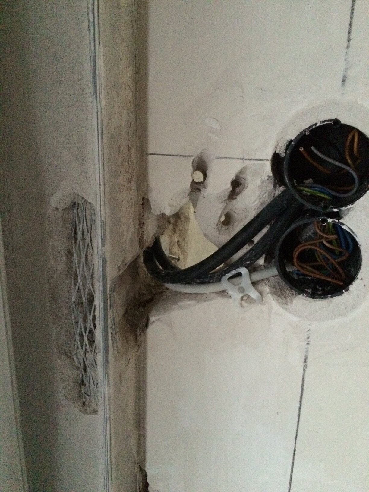 Wurde als Mangel bei der Übergabe aufgenommen, behoben bis heute nicht und die Frage die wir uns generell gestellt haben, wie könnte denn die Behebung aussehen ?? Einer der geschätzten Fachkräfte der Malerfirma kommt vorbei und schmiert Gips an die Dosen und fährt dann wieder ... wir können dann die ganze Wand danach auf unsere Kosten neu streichen ?? Antwort vom Bauleiter zu dem Thema fehlt natürlich bis heute.....