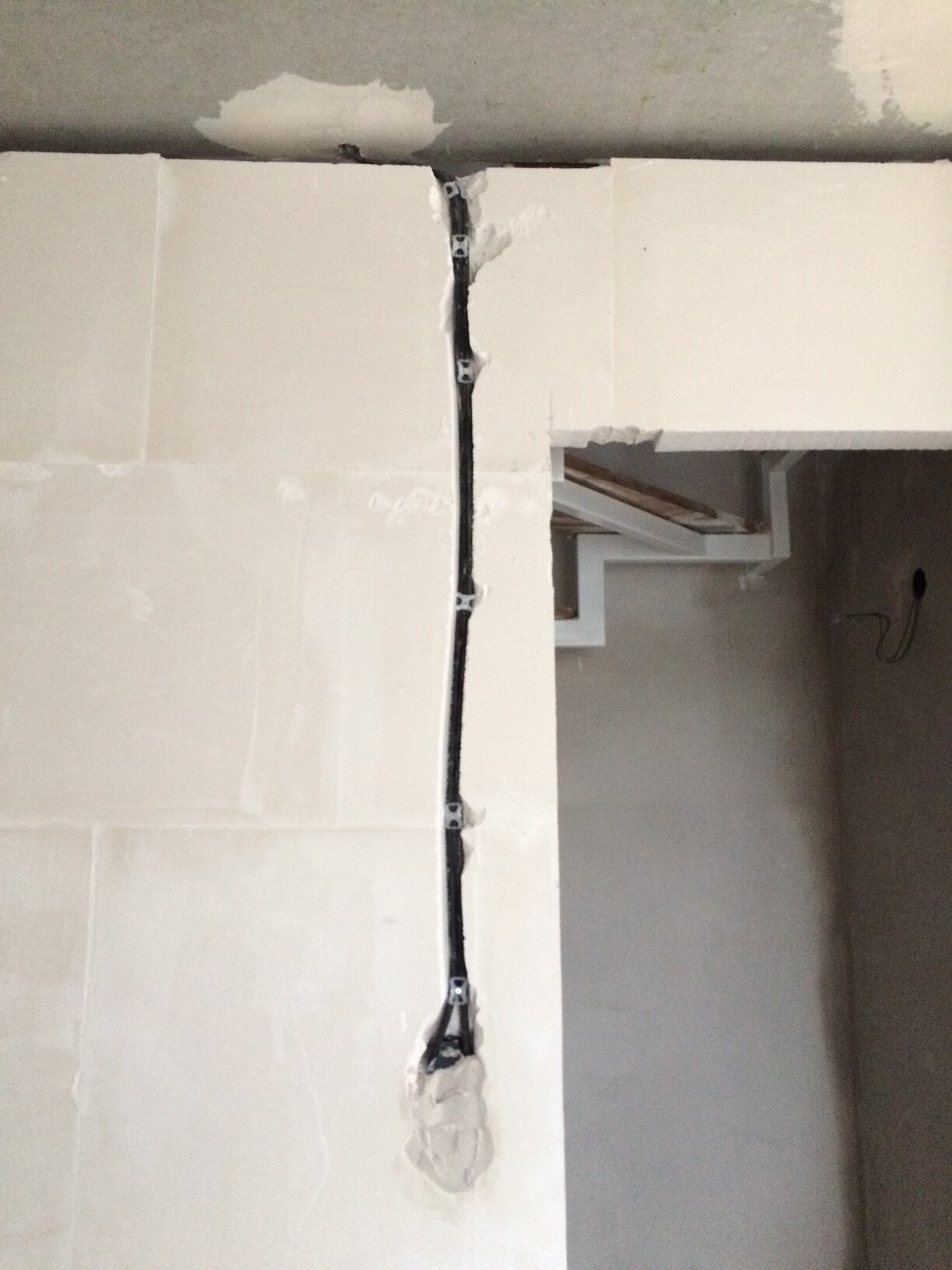 Es geht auch darum wie diese unnötigen Löcher und Ausbrüche anschließend dann wieder verschlossen wurden. Es wurde kein Gewebe eingearbeitet, sondern einfach nur 10 cm dick Gips reingeschmiert und dann auch noch schlecht verschliffen bzw nicht flächig genug wie man an der Steckdose sieht..Was das für ein Rissbildung und Ausbrüche auf solchen Flächen und Dicken zur Folge hat wenn kein Gewebe eingearbeitet ist, dürfte Dir als Uniflott Fachmann sicher bekannt sein.