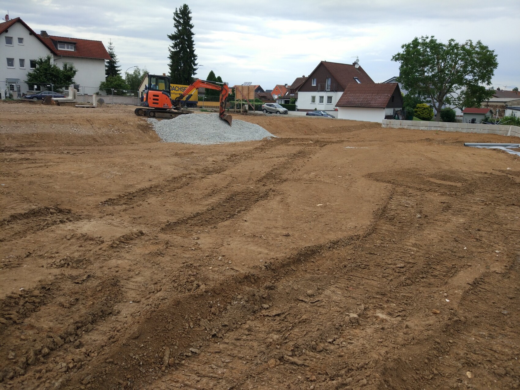 - Die Planierarbeiten für die einzelnen "Grundstücksstufen" sind zumindest im vorderen Bereich entlang der Straße abgeschlossen. Man kann somit die Ausmaße der Grundstücke schon erkennen.