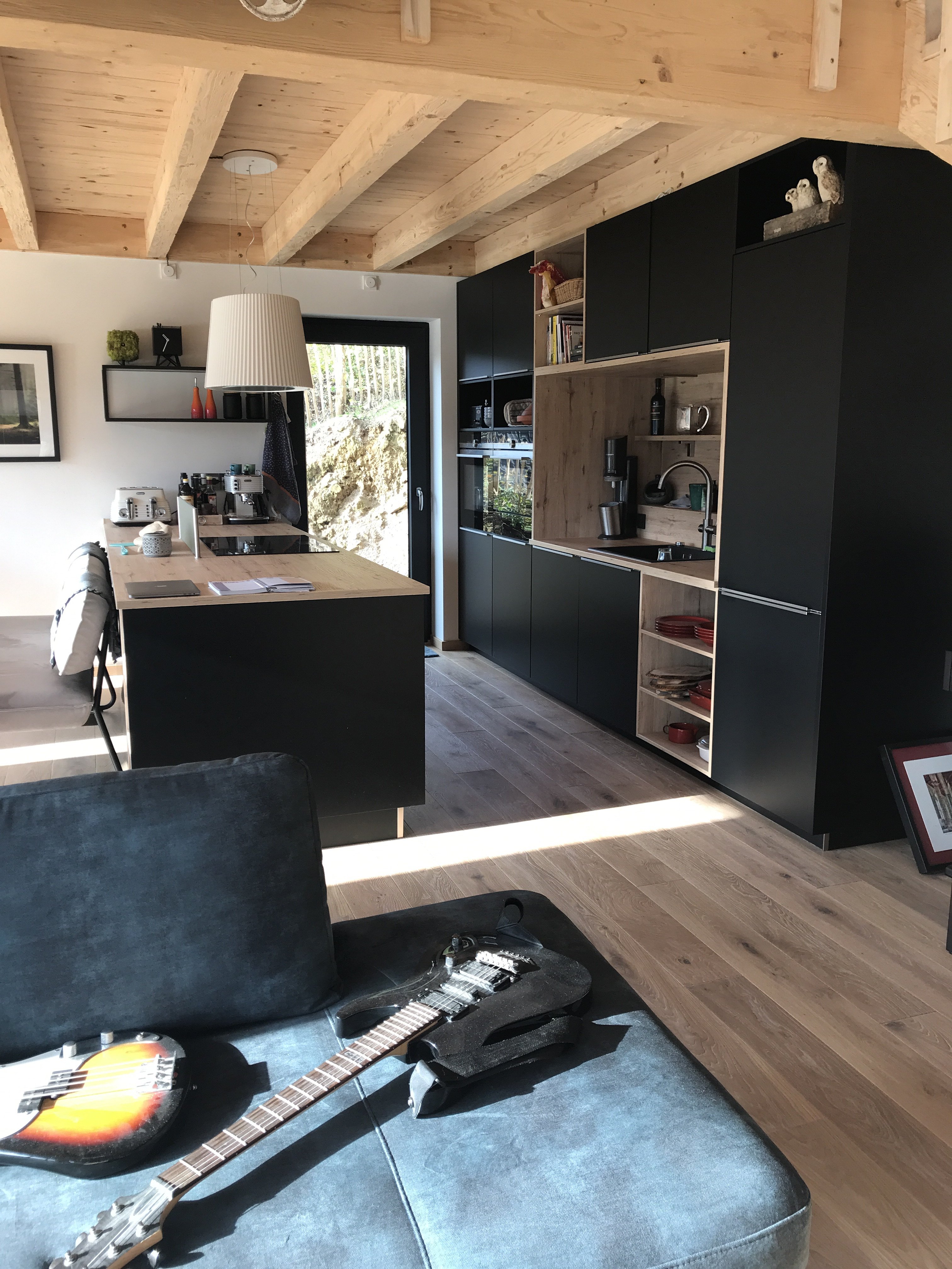 Was uns geholfen hat: in der Nachbarwohnung (2 Kinder) das Parkett im Wohnzimmer zu sehen. Mit den Kids ist das eh so durch, da machen die paar Macken In der Küche vom Kochen keinen Unterschied. Und optisch ist es im Allraum so viel besser!