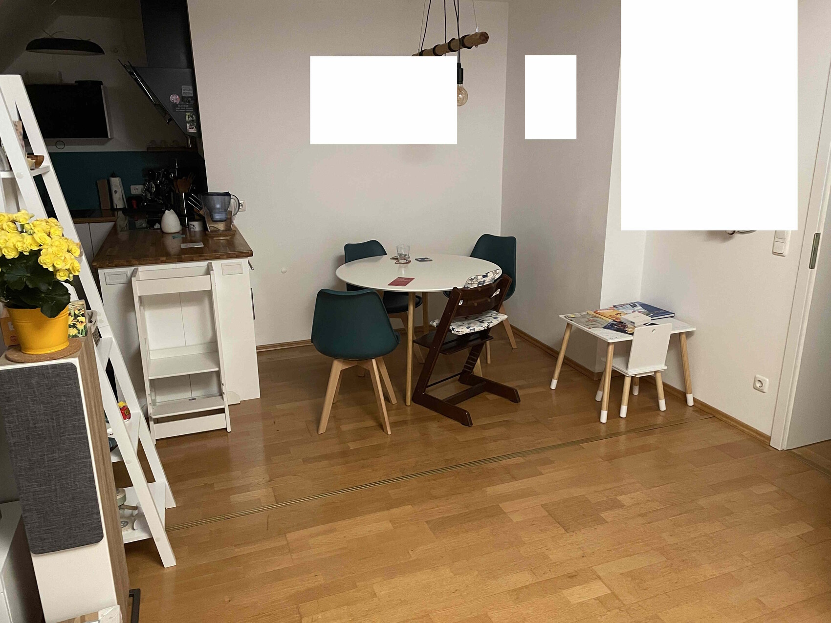 wir haben uns nun für einen Tisch mit 140 x 80 cm entschieden. Der steht dann an der Rückwand, wenn wir zu zweit mit unseren beiden Kindern sind. Bei Besuch wird er dann in den Raum geschoben, so dass man auch an den Stirnseiten sitzen kann.