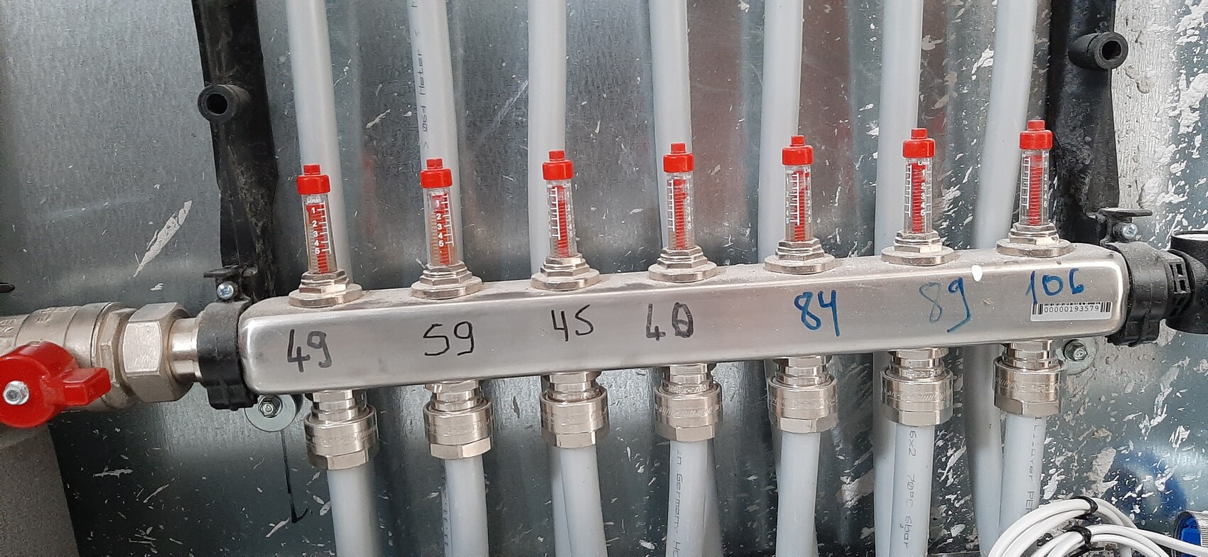 Ganz links ist das Ventil offen (bei der 100). Siehst du auch oben an dem blauen Teil, was aus dem Stellmotor oben rauskommt.