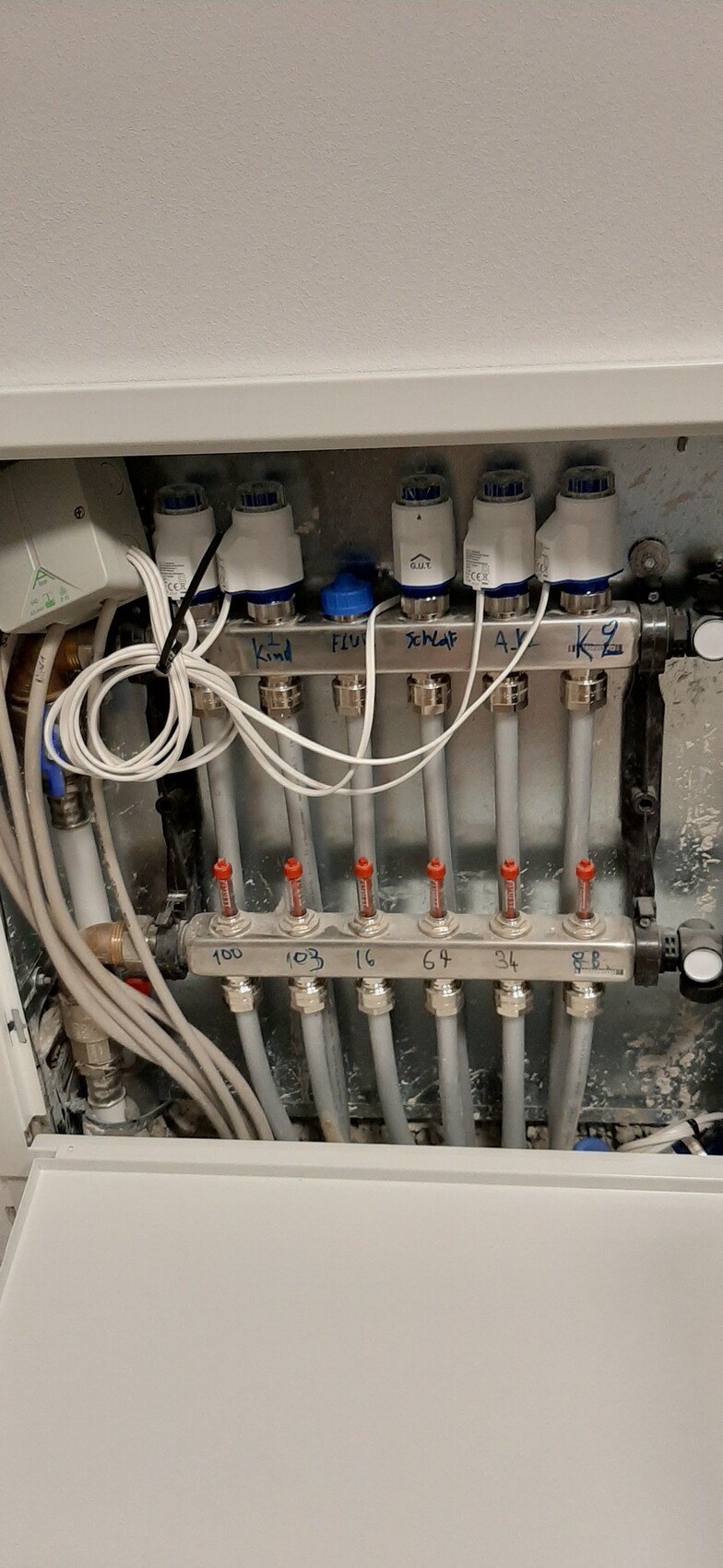 Das 5. Bild zeigt das Überstromventil. In der Heizperiode solltest du es spätestens schließen und alle ERR öffnen damit die Wärme im Estrich ankommt.