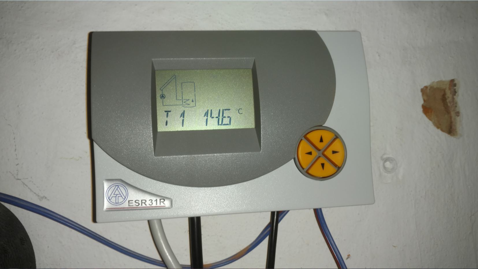 Im Anhang ein paar Bilder von heute Nachmittag, leider war nicht mehr genug Sonnenschein vorhanden um die Temperatur auf dem Dach entsprechend hoch zu halten (Bild 2, T1 ist der Sensor am Dach und natürlich wird die Pumpe gerade nicht angesteuert).