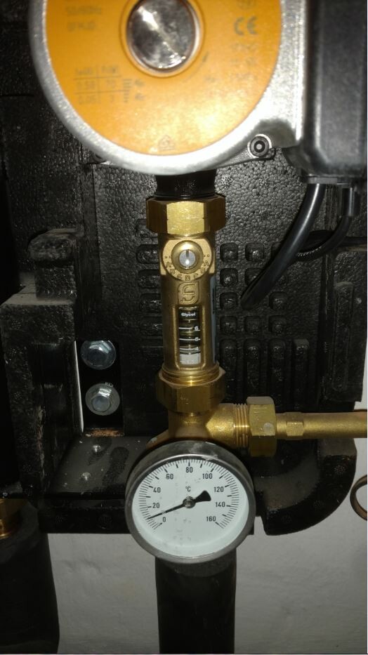 Der Durchflussmesser kann bei geringen Volumenströmen schon mal etwas hängen, bei tiefstehender Sonne im Winter wird der jedenfalls nicht tanzen.