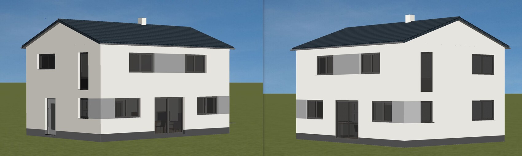 Ich find's besser als vorher. Sieht aber wirklich noch aus wie ein Zweifamilienhaus. Aber das macht ja nichts. Was hat sich denn für die Räume innen verändert? Du scheinst ja doch sehr an der Außenansicht zu hängen. Die plant man als letztes. Besser wäre es sich die Funktionalitäten der Räume erst anzugucken.