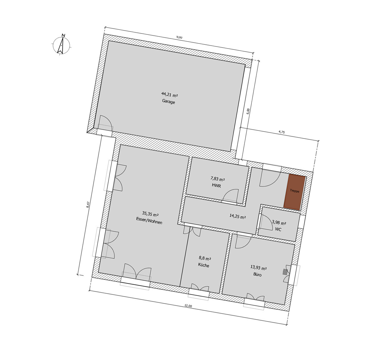 Ich würde die Garage aber auch auf die andere Seite des Hauses setzen.