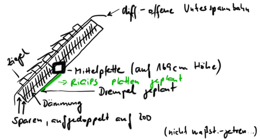 Siehe Skizze ... unter die Mittelpfette sollen nun ueber die Dampfsperre Rigipsplatten
