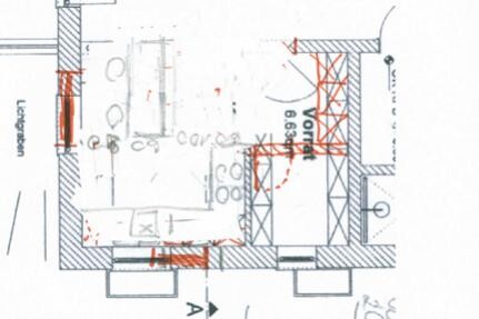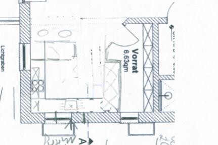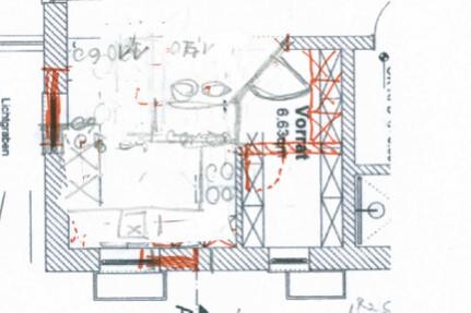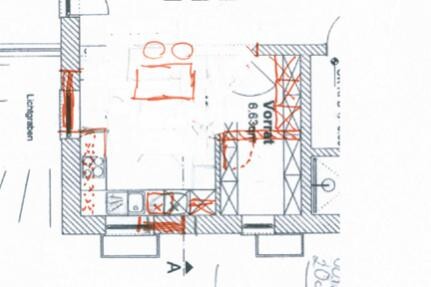 1. Entwurf... Verkleinerung der Speis und dadurch in 180 Breite Möglichkeiten für hochschränke... leider ist dann Kühlschrank zu weit von der Zubereitung entfernt