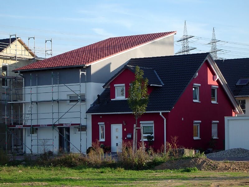 Meine Nachbarin hat den Ton angeben dürfen, legte 1 1/2 Geschosse fest, jetzt baut sie nicht weiter(pleite) und ich habe ihre Vorgaben. Dafür durften wir Zwerggiebel machen, was sie nicht hatte.