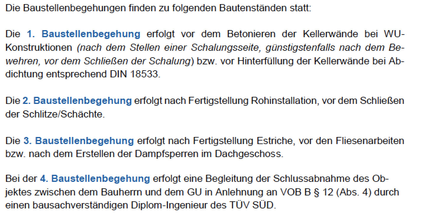 Wir sind Bauherren und haben ein Angebot vom TÜV Süd mit 4 Begehungen siehe Bild unten.