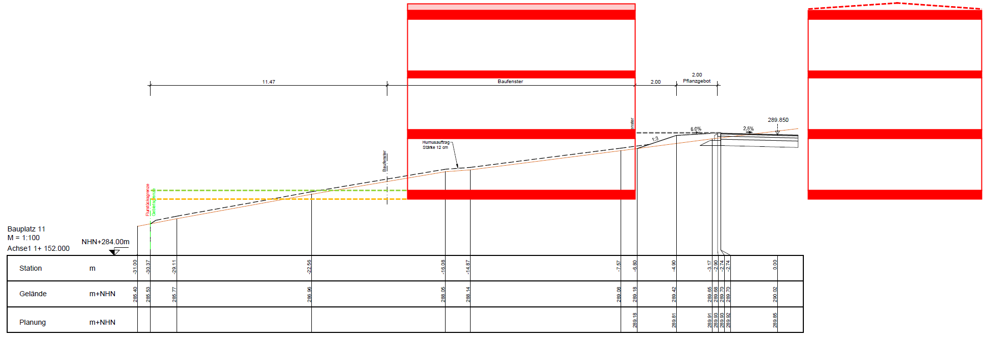 Das stimmt, wobei ich auf 6,1m fürs Haus ab Straßeebene komme. Aber da ist, wie du sagst, auch fraglich, was genau die Bezugsebene bei der Straße ist.Die unklare Bezugshöhe sollte man vorher klären. Dafür ist das Bauamt da. Da geht es um ca. 6 cm. Oder zu meinen Gunsten auslegen. Du hast aber die Begrünung unterschlagen.