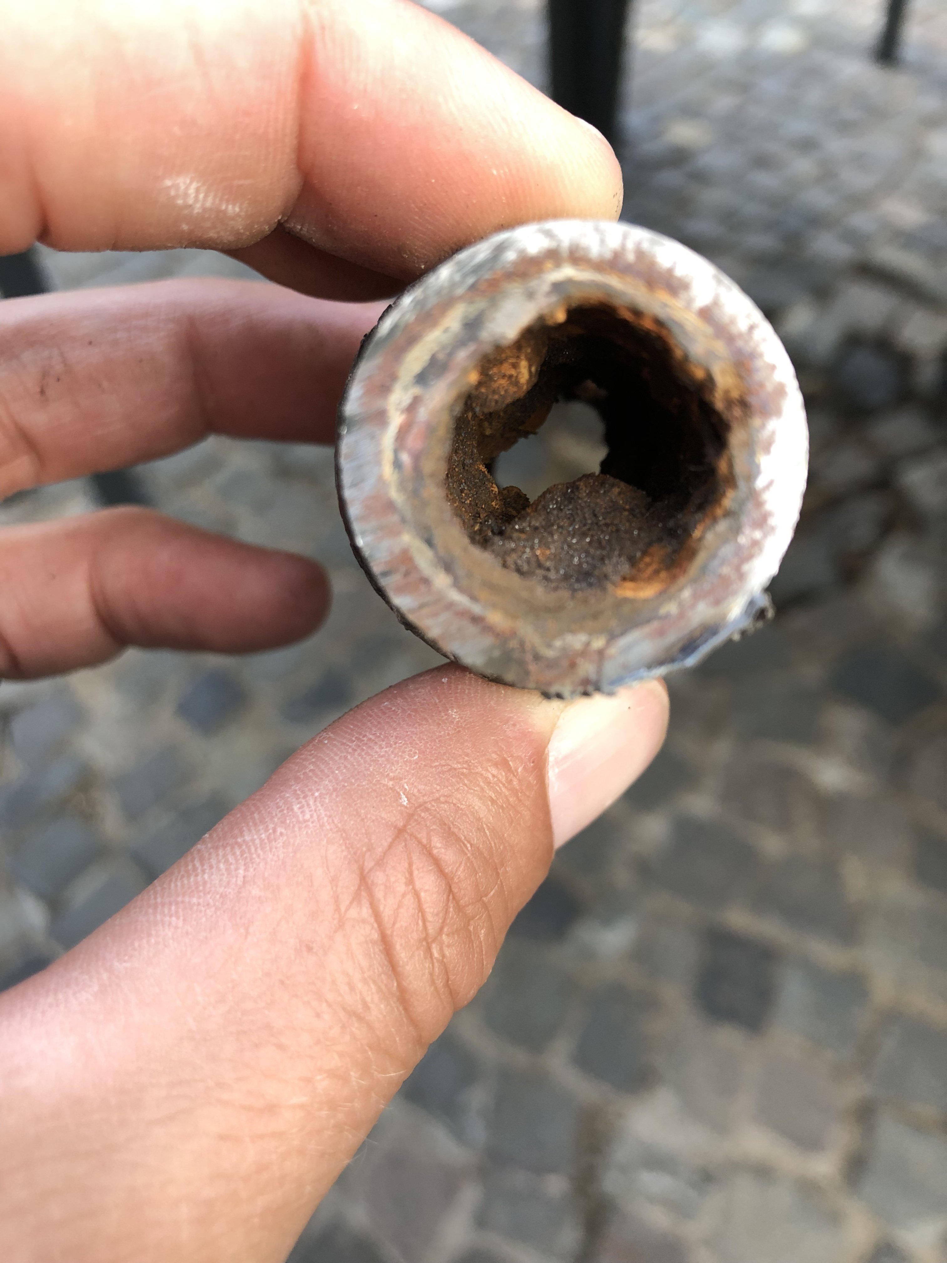 Wie haben jetzt alles aufgestemmt und die Leitungen erneuert, alles andere macht keinen Sinn. Die alten Rohre sehen von innen ziemlich eklig aus, ich bin froh dass die raus sind!