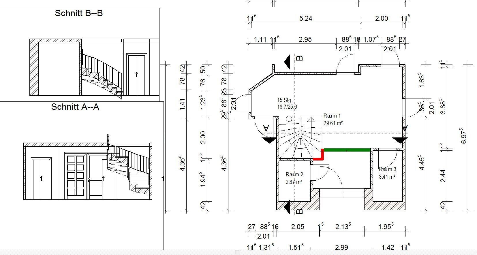 kbt09 schrieb:Was macht es für einen Unterschied - außer beim Umbauaufwand - ob die neue Treppe an der von Dir skizzierten Stelle positioniert wird oder im bestehenden Zimmer "1" ? In beiden Varianten sollte der Aufgang ziemlich unter dem First liegen; wobei ich beinahe glaube, daß Deine Varianten im Aufgang zu weit an den Dachrand rücken.